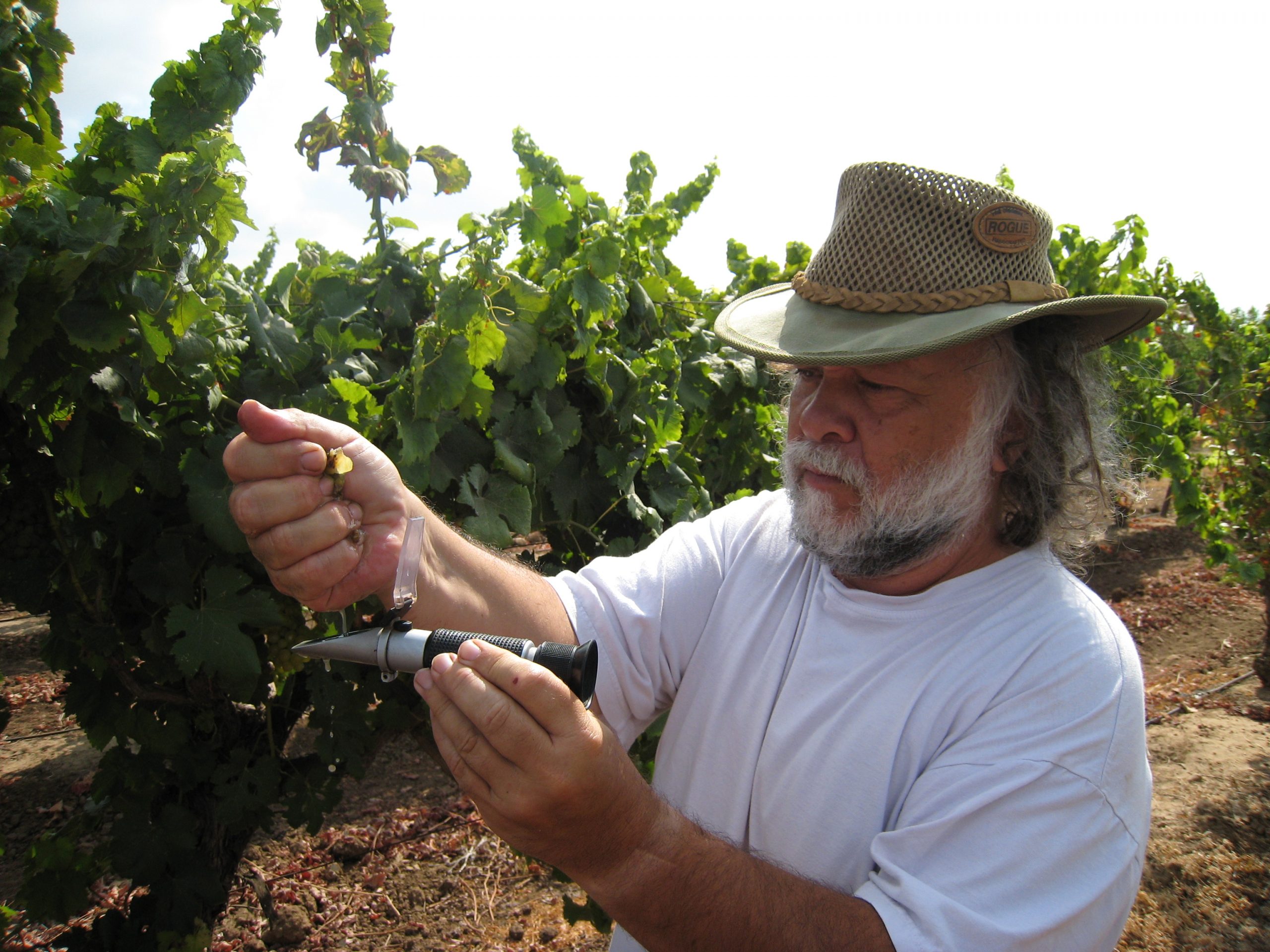 Ze’ev prüft die Reife seiner Chenin Blanc Trauben